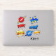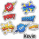 Cartoon themed sheet of stickers with action hero style sound effect bubbles. Personalize the custom black text, on the bottom sticker, to read what you want.