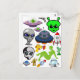 Cartoon Space Aliens Greys, space ships UFO Art Collage sheet postcard