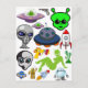 Cartoon Space Aliens Greys UFO Art Collage sheet Postcard