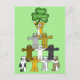 Cartoon cats of various colours standing on each other's shoulders. The top cat is holding a shamrock that has 'Happy St Patrick's Day' written on it.