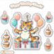 illustration of a cute cartoon tiger cub celebrating a birthday.