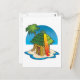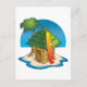 Cartoon Tiki Hut with Surfboard and Palm Postcard