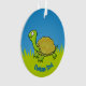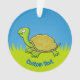 Cartoon illustration of a happy turtle. Custom text on both sides.