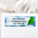 Fun Vosmaeri Eclectus address labels, with a cloudy sky blue background and a male cartoon parrot on the right. You can instantly personalize these labels. Great for bird owners.