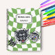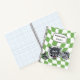 video game controller breaking trough a green and white retro chequered background. To make it extra special, it is also monogrammed and personalized with name or initials or any text you like. This cool notebook is perfect for video games lovers, a great addition to your kids school supplies.