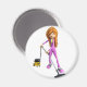 Cartoon Woman Using A Vacuum Magnet