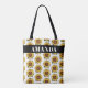Cartoonish Yellow Custom Name Sunflower Pattern Tote Bag
