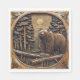 Carved Wood Bear Full Moon Pine Tree Forest Napkin