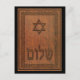 Features a computer-generated "old wood carving" of a Magen David (Star of David), text reading "Shalom" and a floral border.