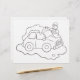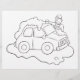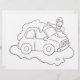 Colouring book page. Cartoon of a man in working form, hand washing a car.