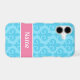 Ce cas élégant et élégant de l'iPhone 4/4S de bleu et de roses indien d'aqua comporte un motif de lis de fleur personnalisé avec n'importe quel nom.