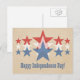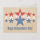 Carte postale amusante et élégante Red, White and Blue Star Cascade Independence Day avec un arrière - plan en papier imitation texturé et des rangées descendantes d'étoiles rouges, blanches et bleues. Cette carte postale unique est une façon parfaite de dire à vos amis et à votre famille d'avoir un heureux 4 juillet! Facile à customiser, ajoutez simplement votre propre texte dans l'espace prévu. Ce design est également idéal pour le Memorial Day !