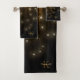 Golden lights, like the rainfall of glass on a chandelier, cascade down the face of this striking design that also features your monogram and name on the front corner. This glamourous towel set design against a black background is also available in a variety of other colours to suit your needs. Search ID789 to see other colour options and products with this design.