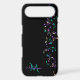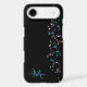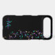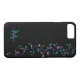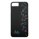 Cascading Music Notes Monogram iPhone 7 Case. Hanging strands of musical notes in violet pink gold and teal green on black or your choice of background colour. Fill in your name and initial at the prompt to personalize and customize anyway you like. A great gift for your favourite musician or music lover.