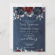 This invitation comes with a plain white envelope. Matching navy burgundy envelope, RSVP and other stationery are purchased separately. A burgundy navy wedding invitation featuring a watercolor-painted floral of deep burgundy and navy blue peonies cascading amongst dusty blue eucalyptus greenery on a navy watercolour background with a white swash font calligraphy set announcing your wedding details.