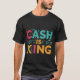 This eye-catching t-shirt features the phrase "Cash is King" in a bold, multicolored design. Each word is a different vibrant colour, creating a playful and energetic vibe.