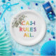 Elegant script font for "CASH RULES ALL" in a metallic or gold colour.