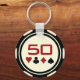 This black and off-white poker chip style keychain is a great personalized gift for the gambler you know.