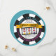 Fun and whimsical casino poker chip and slot machine jackpot wedding save the date announcement card. Fun for a Las Vegas destination wedding. The bride and groom's names, the wedding date, and the location can be easily personalized.