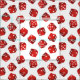 Fun fabric printed with a pattern of red craps game dice.