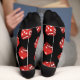 Novelty socks patterned with red craps dice on a black background. Perfect for craps players and casino lovers.