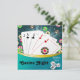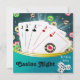 Fun Casino Night theme Birthday Party invitation with playing cards, dice and poker chips. Card back has matching design. All text on front and back is ready for you to customize.