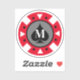 Casino poker chip vinyl sticker with name monogram or value. Personalize with custom text. Round Las Vegas gambling theme stickers. Available in small and large sizes. Custom decals for phone, water bottle, laptop, car and more. Colours can be changed.