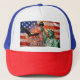 Celebrate America’s 250th Birthday with this patriotic 4th of July Trucker Hat. Featuring a dramatic nighttime scene with the American flag filling the background, vibrant fireworks lighting the sky, the Statue of Liberty standing proudly, and a bald eagle soaring in flight, this design captures the spirit of freedom, unity, and celebration. Perfect for backyard barbecues, fireworks parties, family gatherings, neighborhood events, and community Independence Day celebrations. Personalize the invitation details on Zazzle to create a memorable keepsake honoring 250 years of American independence.