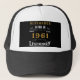 Un camionneur / casquette de baseball personnalisé pour cette personne née en 1961 et ayant 60 ans. Ajoutez le nom à ce design vintage de style rétro noir, blanc et or pour un cadeau personnalisé de 60ème anniversaire. Modifiez facilement le nom et l'année avec le modèle fourni. Un merveilleux cadeau d'anniversaire noir personnalisé. Plus de cadeaux et de fournitures de fête pour cette 60ème fête disponibles avec le design "légendaire" dans le magasin.