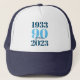 Un casquette de baseball audacieux et frappant de 90ème anniversaire (ou de n'importe quel âge). Ce casquette d'étape spécial consiste en la date de naissance et d'anniversaire en typographie bleu foncé - avec l'âge mis en évidence en bleu clair.