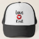 Cet article a été conçu avec des gens qui aiment Knit en tête. grand dos et des lettres rouges "Love 2 Knit" grande idée cadeau pour un Knitter.