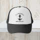 Le casquette du capitaine de bateau sur le thème nautique présente une illustration d'une ancre noire classique, de votre nom et du nom de votre bateau en lettres élégantes.
