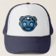 Illustration d'un astronaute zombie aux grands yeux portant un casque spatial avec un bouclier en verre fissuré dans les tons bleus. Mots clés : astronaute, cosmonaute, casque, zombie, espace, astronaute, monstre, cadet, cadet, mort