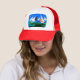 Chapeau camionneur classique en rouge et blanc avec motif voilier, fait d'un collage en papier peint à la main.