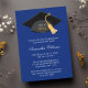 Un capuchon de graduation moderne et un design de goût. Montré dans les couleurs bleu, noir et or. Idéal pour une invitation de baccalauréat, une invitation de baccalauréat, une invitation de fête de baccalauréat et plus encore.