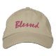 Béni brodé en rose sur un casquette de couleur kaki. Vous pouvez customiser la couleur du casquette et la couleur du texte.