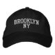 BROOKLYN NY Minimaliste brodé blanc sur casquette de coton noir. La broderie blanche est personnalisable à d'autres choix de couleurs en sélectionnant le bouton "Modifier la conception". Vous pouvez également choisir la couleur du casquette sur la page principale de l'article.