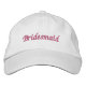 Casquette de baseball réglable en blanc avec broderie personnalisée de la marque Alternative Apparel, avec texte "Bridesmaid" en rose, typographie et lettrage, et conception graphique numérique réalisée par TheFabricSeal, boutique à la demande sur Zazzle.com #ZazzleMade https://www.zazzle.com/store/thefabricseal TheFabricSeal©️Original.