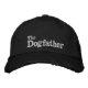 Un casquette masculin amusant avec les mots "Le Dogfather" en haut. Parfait pour l'amoureux des chiens. Avec votre nom personnalisé placé sur le côté du casquette. L'arrière - plan est noir avec un script blanc. Un cadeau masculin amusant.