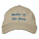 Casquette de baseball réglable en Apparel Basic personnalisée avec broderie en kaki avec texte "Brother Of The Groom" en typographie de lettres et conception graphique numérique en bleu marine par TheFabricSeal impression à la demande sur Zazzle.com #ZazzleMade https://www.zazzle.com/store/thefabricseal TheFabricSeal©️Original.