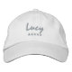 Lucy nom brodé en lettres roses assez douces pour votre femme ou fille préférée appelée Lucy. Embellisté avec 5 étoiles florales assorties.