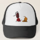 Petit chiot brun hilare et mignon qui a peur du monstre rouge mauvais d'aspirateur. Idée de cadeau d'amusement pour des amoureux de les chiens. Peut également ajouter le texte fait sur commande et changer la couleur d'arrière - plan en passant commande.