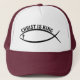 "Jésus Poisson" (autrement appelé les Ichthys), qui a une croix pour un oeil. Texte ci-dessus : "Christ est roi".