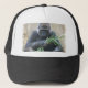 Le jeu se reposant de gorille avec le bambou couvre de chaume la casquette de baseball.