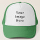 Trucker Hat Green & White Casquette de baseball - Modèle Customisé Blank DO-IT-YOURSELF Personnalisez avec votre propre nom, motif, design, devis, monogramme, photo. Utilisez nos modèles cool, oeuvres d'art, photos, graphiques et illustrations, puis ajoutez des noms, du texte, des citations et des monogrammes pour créer votre propre casquette de baseball. Cliquez sur "Customisez-le!" pour le rendre personnalisé ou monogrammé. Ces casquettes sont de grands cadeaux pour les hommes, les femmes et les enfants (et vous aussi, bien sûr !). Mettez votre photo ici !