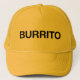 Amusement de BURRITO et slogan ironique sur le casquette de camionneur, noir, déclaration typographique drôle, inspirée par rossitano de contreseing de caractère de comédie de TV. un mot. burrrrito.