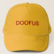 LE CASQUETTE JAUNE INDIQUE "DOOFUS" DANS LES LETTRES ROUGES