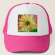La marguerite colorée ajoute du charme à ce casquette rose.