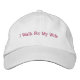 Montrez votre soutien avec ce Casquette de sensibilisation au cancer du sein en blanc avec le texte brodé rose : Je marche pour ma femme.