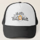 Chapeau de camion en noir et blanc avec une impression Halloween joyeuse. Acheter tel quel ou personnaliser.